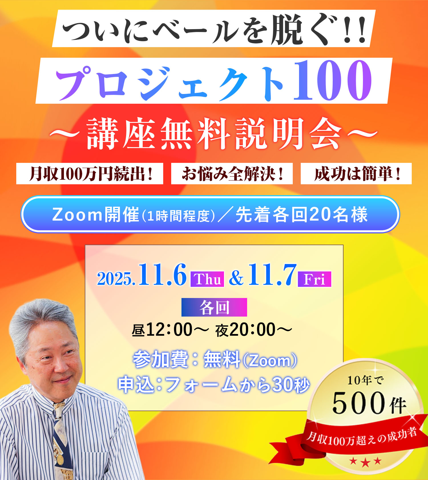 プロジェクト100 講座無料説明会|Zoom開催/各回定員20名様